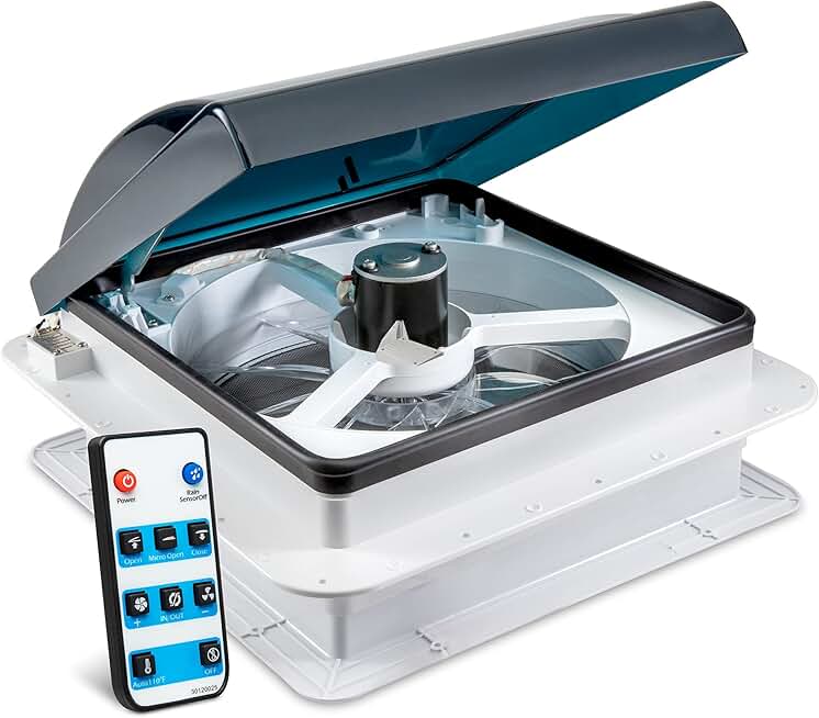 Hike Crew 14” RV Roof Vent Fan w/Remote | 12V 6-Speed Intake & Exhaust Camper Fan | Auto Temperature, Rain Sensor & Electronic Open/Close | Includes Screws & Garnish | Smoked Lid