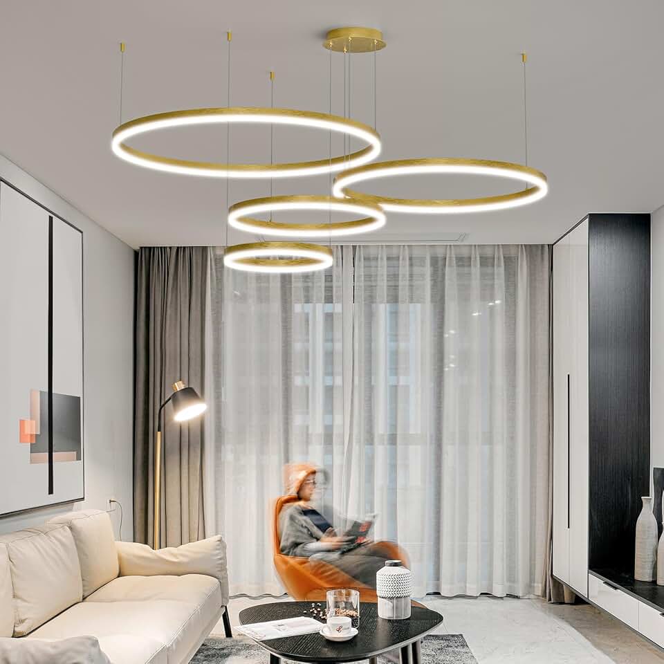 Gold Chandelier, 4-Light Modern Ceiling Chandelier for Dining Room Light Fixtures Hanging, Color Temperature and Height Adjustable Chandeliers for Living Room, Bedroom, Kitchen 11.8+15.7+23.6IN+31.5IN