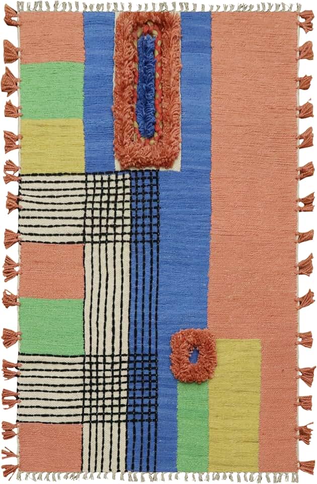 Kilim Rug 10x18 Area Rugs for Living Room Flatweave Rug Blue Multicolor Cotton Rug Embroidery Washable Dhurrie Indoor Outdoor Boho Rus for Large Area Dining Room Hall Room Patio Doormat