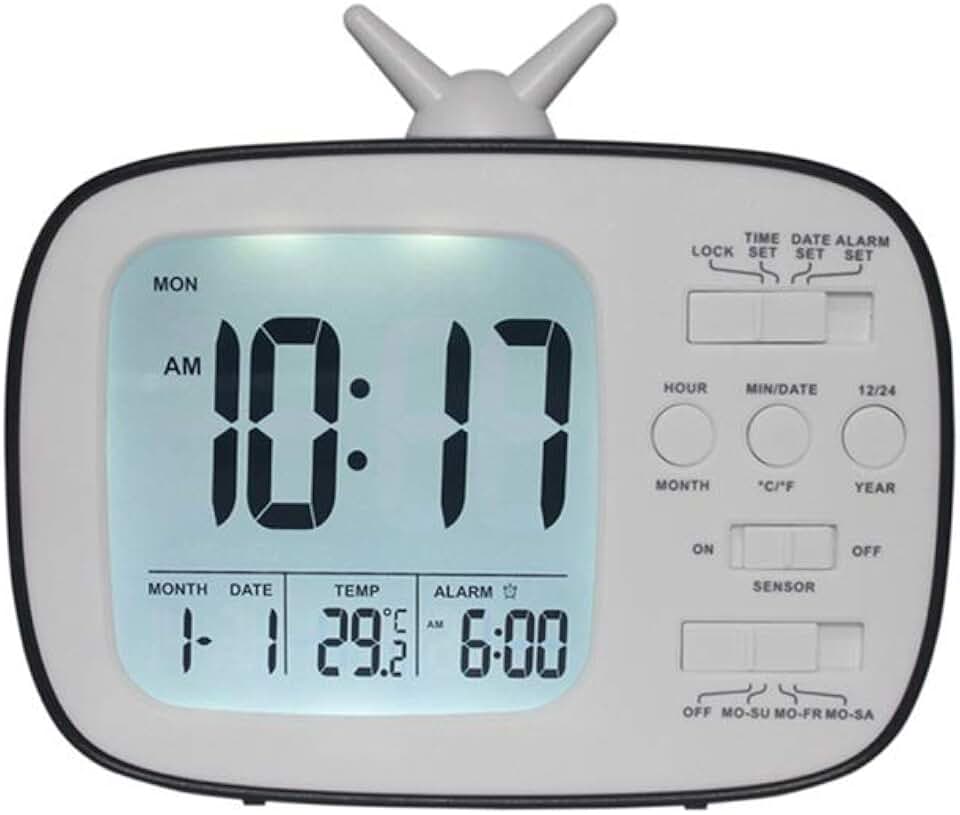 LED Digital Alarm Clock with Night Light Desk Display Smart TV Shape Clock Thermometer Calendar Alarm Clock