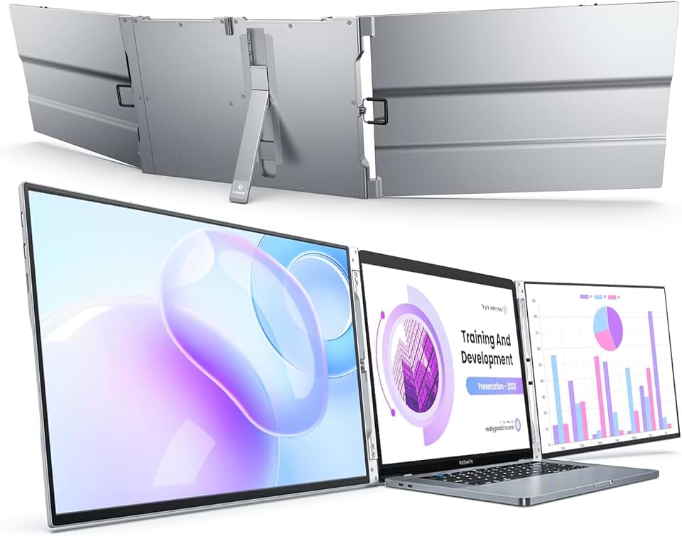 LK14 Portable Triple Monitor for 13-16" Laptop, 14" 1200P Al Alloy Tri Screen Monitor, Laptop Triple Monitor Extender, Portable Dual Monitor for Travel, Meeting, Classes, Game, USB-C & HDMI