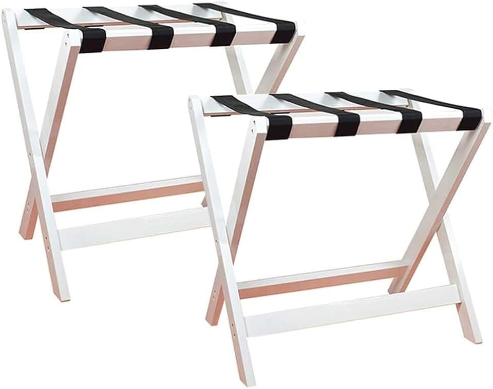 Foldable Luggage Rack for Hotel Guest Room, Suitcase Stand Storage Bag Foldable Floor-Standing Nylon Bandage Solid Wood 2 Pieces (Color : White, Size : 60x40x60cm) (A 60x40x60cm) (White 60x4