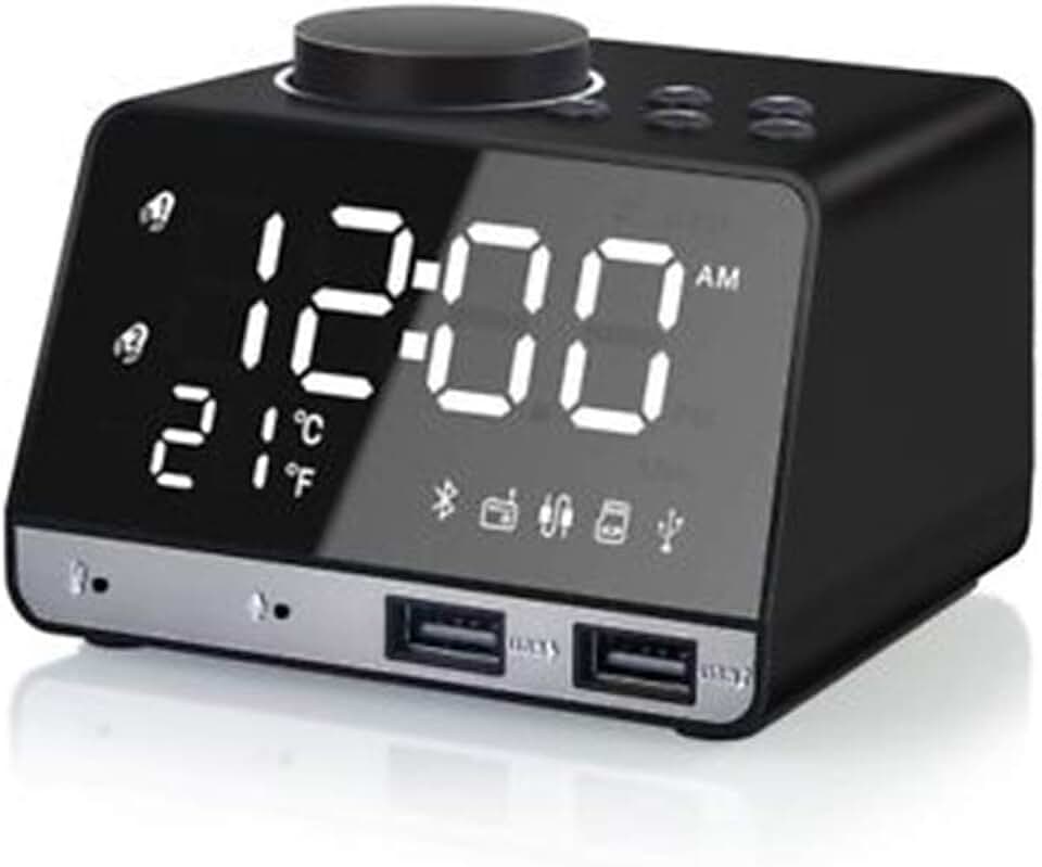 Subwoofer Radio Rear View LED Dual Alarm Clock USB Charger Clock Displ
