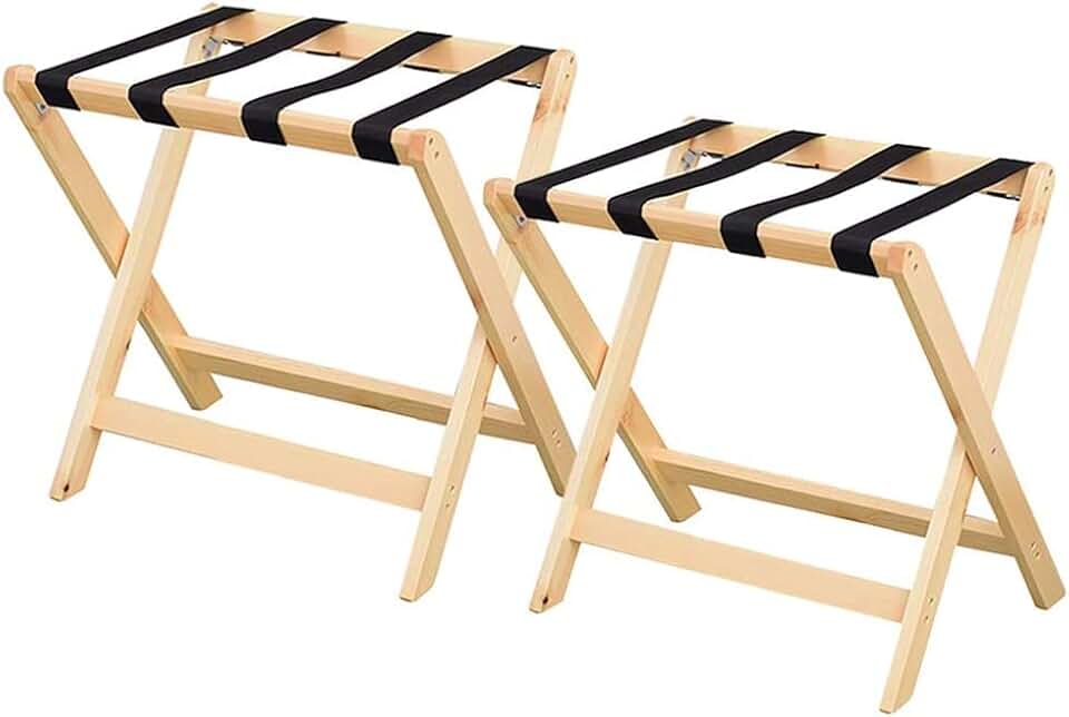 Foldable Luggage Rack for Hotel Guest Room, Suitcase Stand Storage Bag Foldable Floor-Standing Nylon Bandage Solid Wood 2 Pieces (Color : White, Size : 60x40x60cm) (A 60x40x60cm) (A 60x40x60