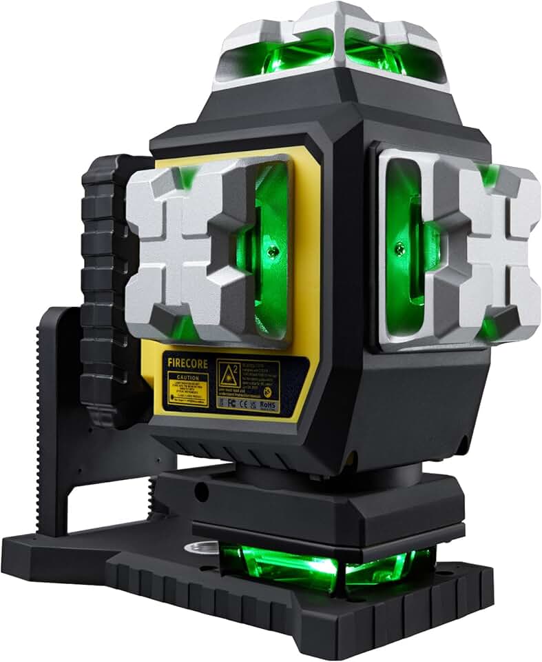 Laser Level 360 Self Leveling, 4 x 360° Green Line Laser with Brightness Setting and LCD Screen for Pros, High Precision Floor Tiling Laser Tool - 2 Rechargeable Batteries & Remote Control