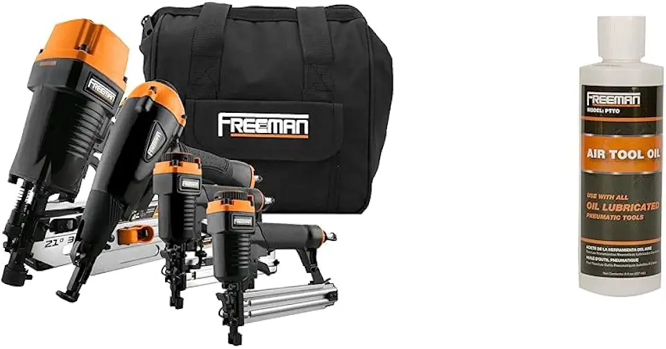 Freeman P4FRFNCB Pneumatic Framing and Finishing Nailer and Stapler Kit with Bag (4-Piece) & PTTO Air Tool Oil, 8 oz.