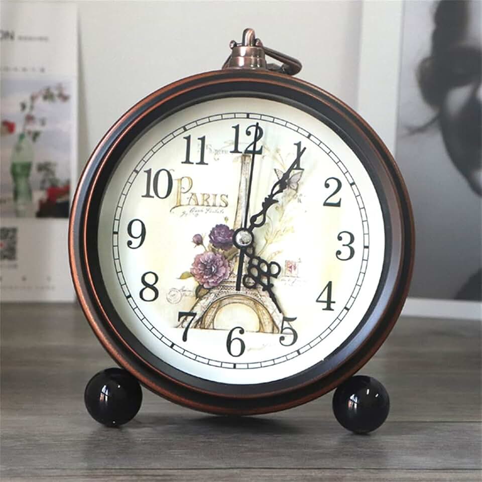 Decorative Quartz Glass Lens Roman Numerals European Desktop Round Silent Office Alarm Clock Flower Print Retro(C)
