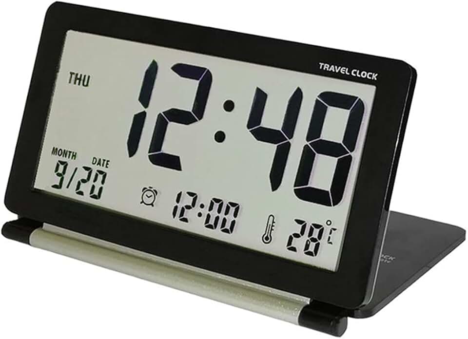 Travel Clock Digital Alarm Clocks Silent Electronic LCD Large Screen Folding Desk Watch Temperature Date Time Snooze Clock(E)