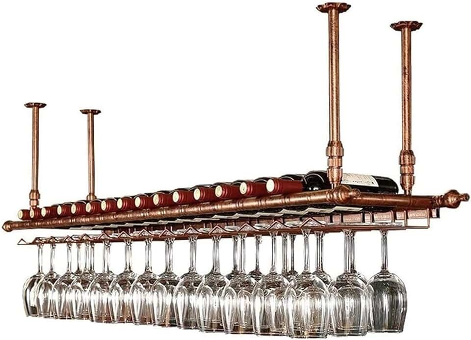 Hanging Wine Glass Rack-Wall Mounted Wine Rack European Style Hanging Wine Rack, Ceiling Wine Bottle Rack, Double-Layer Storage, Wall-Mounted Wine Glass Rack, Suitable for Kitchen/
