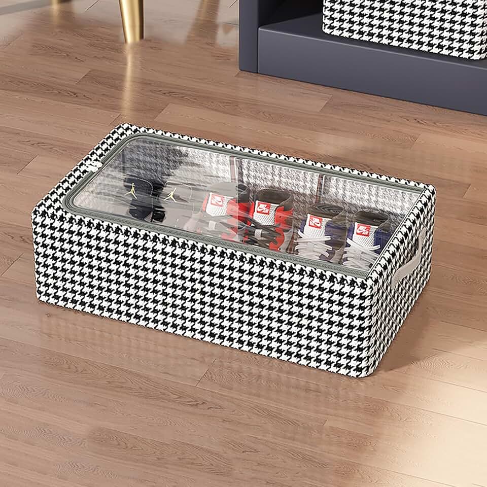 Sturdy Under Bed Storage Drawer with Clear Window and Zip, Foldable Flat Closet Organizers and Storage Bins, Space-saving Bedroom Storage Bags for Shoe, Clothes ( Color : B , Size : MEDIUM_6 PIECES )
