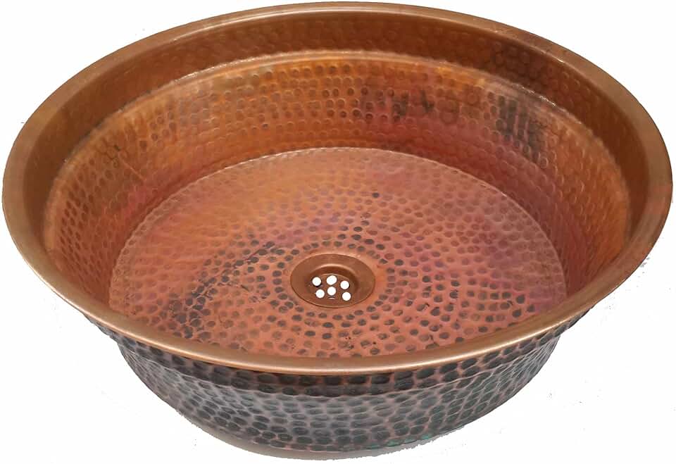 Farm House Rustic Fire Burnt Vessel Tempered Copper Bathroom Sink Toilet Washroom Above Counter Washbasin Bowl Basin Vintage Antique Decor