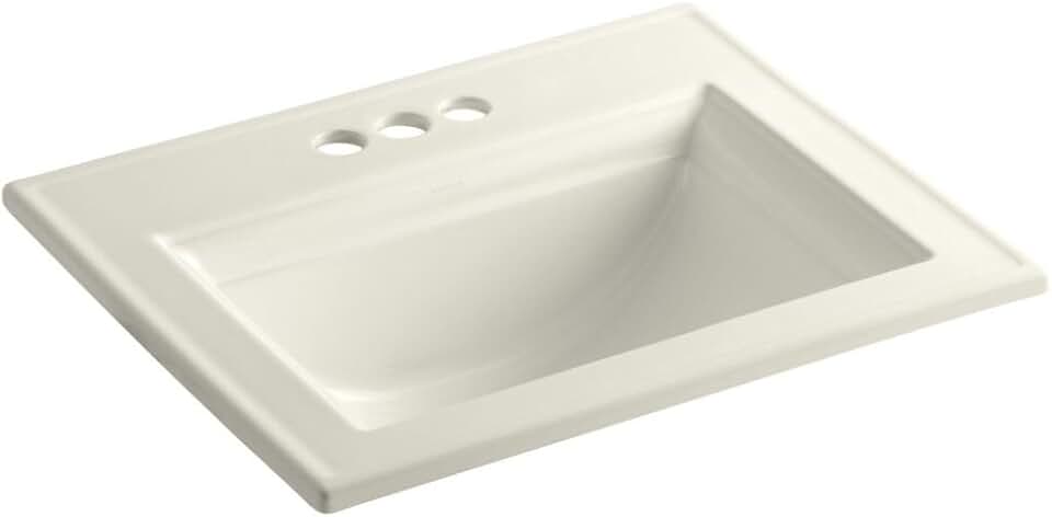 Kohler K-2337-4-96 Memoirs Rectangular Drop-In Single Bowl Bathroom Sink Biscuit