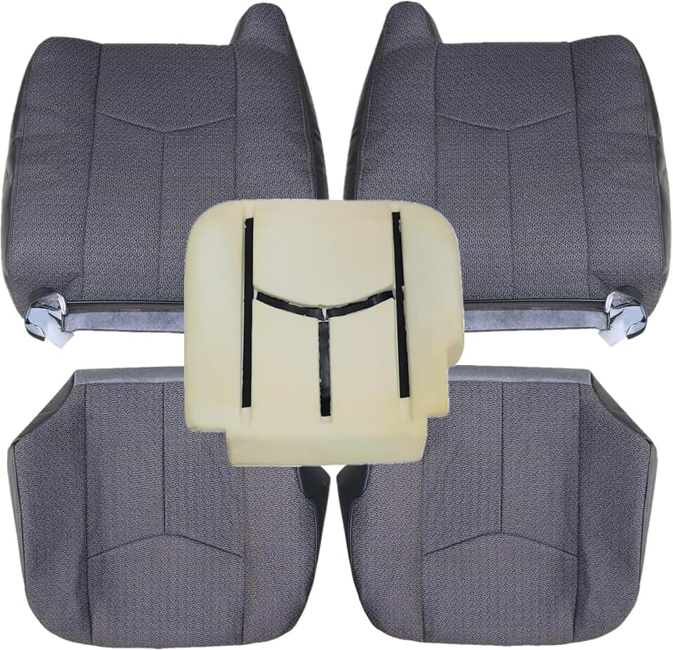 SecosAutoparts Driver and Passenger Bottom & Top Lean Back & Driver Foam Cushion Dark Gray Replacement Cloth Seat Cover Compatible with Chevy Silverado GMC Sierra 2003 2004 2005 2006 2007