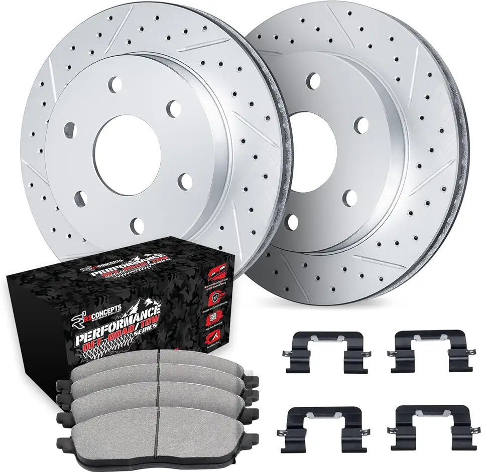 R1 Concepts Front Brakes and Rotors Kit |Front Brake Pads| Brake Rotors and Pads| Performance Off-Road Brake Pads and Rotors | Hardware Kit|fits 2003-2022 Toyota 4Runner, FJ Cruiser, Hilux, Tacoma