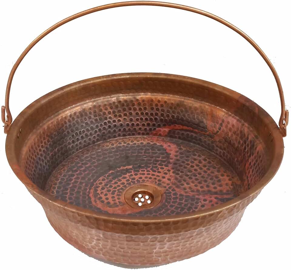 Farm House Rustic Fire Burnt Vessel Tempered Copper Bathroom Bucket Sink Toilet Washroom Above Counter Washbasin Bowl Basin Vintage Antique Decor