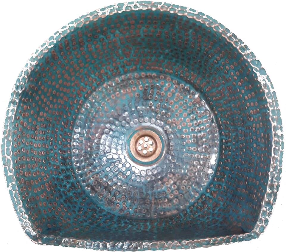 Farm House Half Round Vessel Rustic Copper Bathroom Sink Green Bowl
