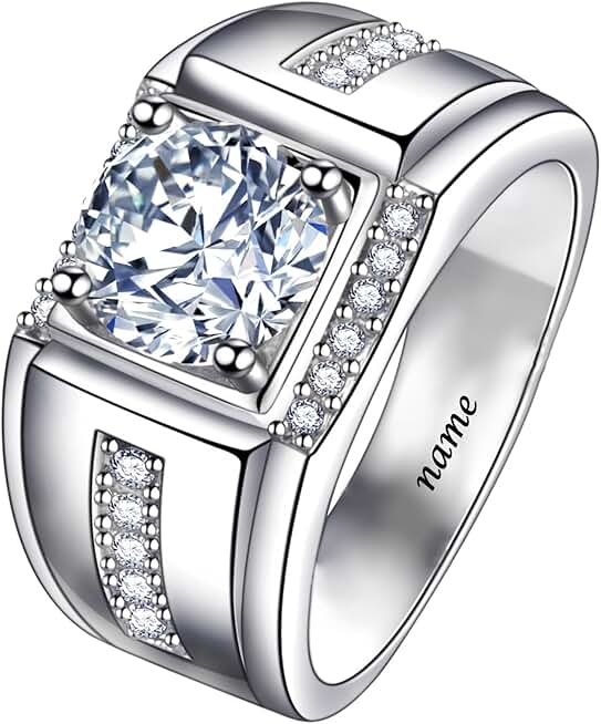 MRENITE 3 CT Men Moissanite Ring with CZ Soild 10k/14k/18k Gold Moissanite Engagement Rings for Men Round Cut Moissanite Rings Wedding for Him Boyfriend Dad Husband (D Color VVS1 Clarity)