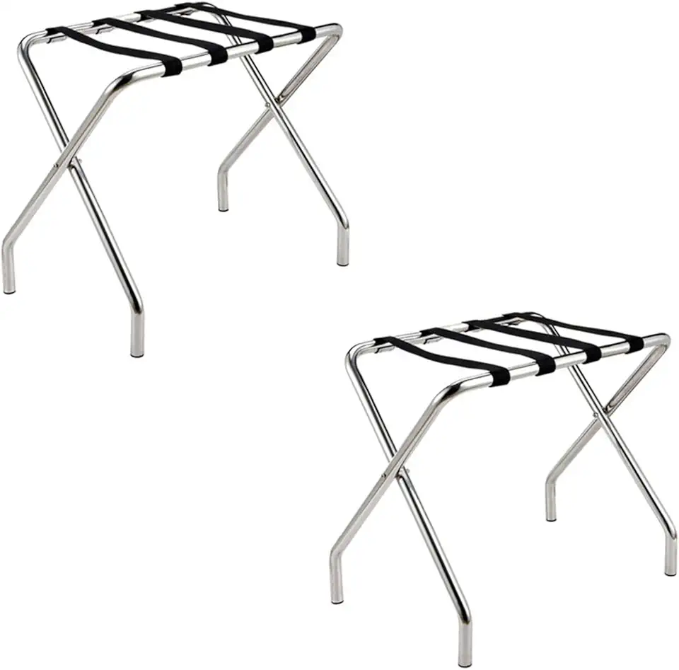 Luggage Rack, Folding Stainless Steel Luggage Stand, Travel Bag Storage Shelf for Hotel, Bedroom, Guest Room, Luggage Holder with Nylon Cord (Color : 2pcs, Size : 60 * 45 * 54cm)