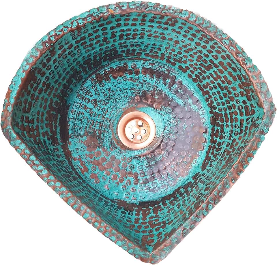 Corner Green Oxidized Rustic Copper Bathroom Sink