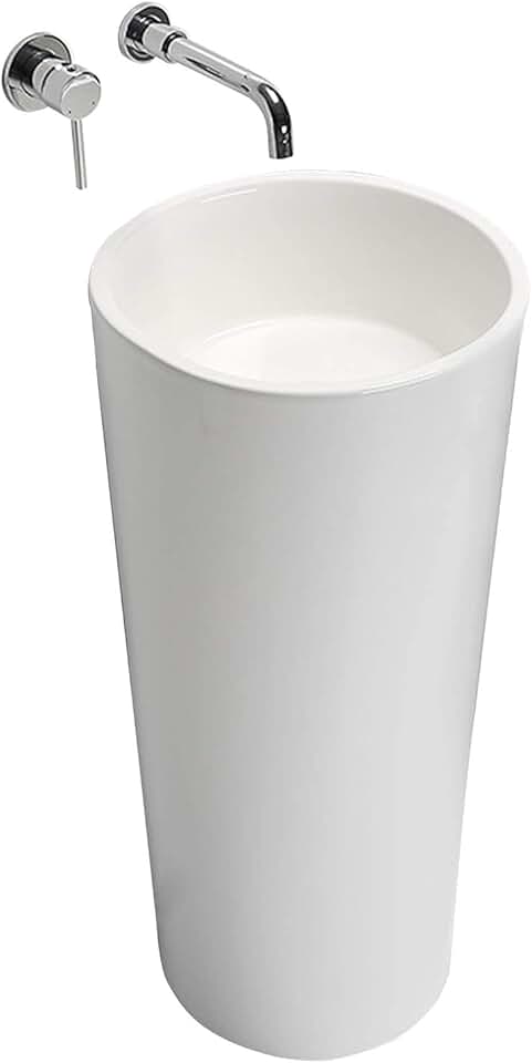 Vessel Sink Siamese Vessel Sink Round, Pedestal Bathroom Sink Vessel Sink Overflow Drain Bathroom Fixtures, for Indoor and Outdoor Small Apartment,White,Faucet B