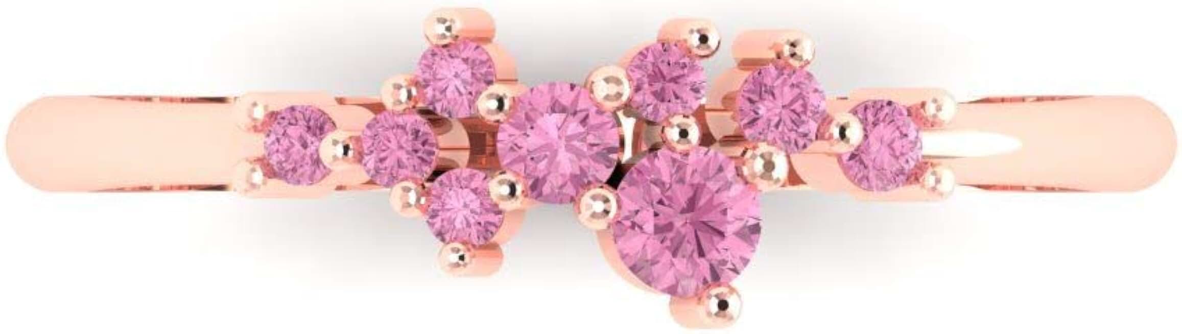 Clara Pucci 0.17 ct Brilliant Round Cut Simulated Pink Diamond 14k Rose Gold Bridal Engagement Wedding Desginer Stackable Band SZ 6.75