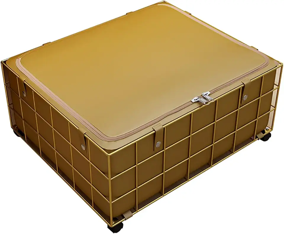 Sturdy Under Bed Storage with Wire Netting Basket and 360°Rotating Wheels, Multi-Purpose Bedding Storage Organizer, Breathable Leather Storage Bag for Quilt Dolls ( Color : Yellow-1 pcs , Size : 21.7"
