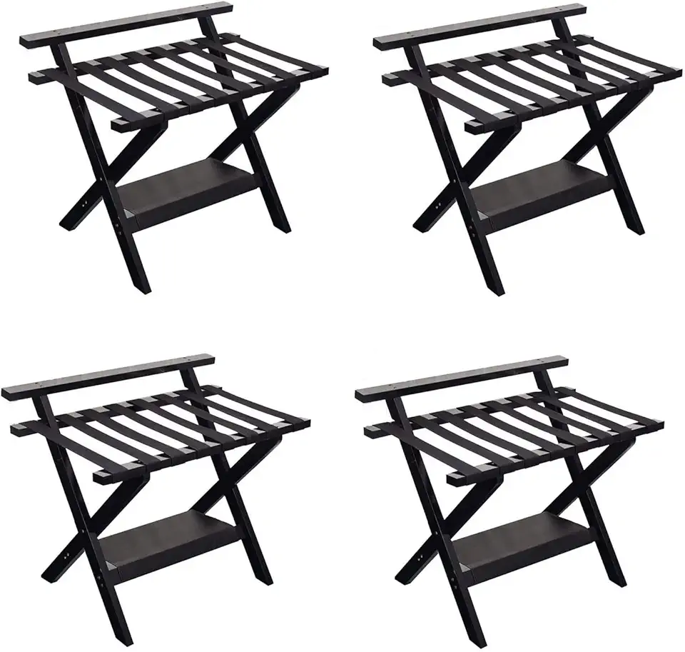 Luggage Rack Set of 4, Foldable Clothes Storage Shelf with Shoe Shelf, Solid Wood Storage Shelf, Double Layer Travel Bag Storage Rack, Practical Household Suitcase Stand (Color : D)