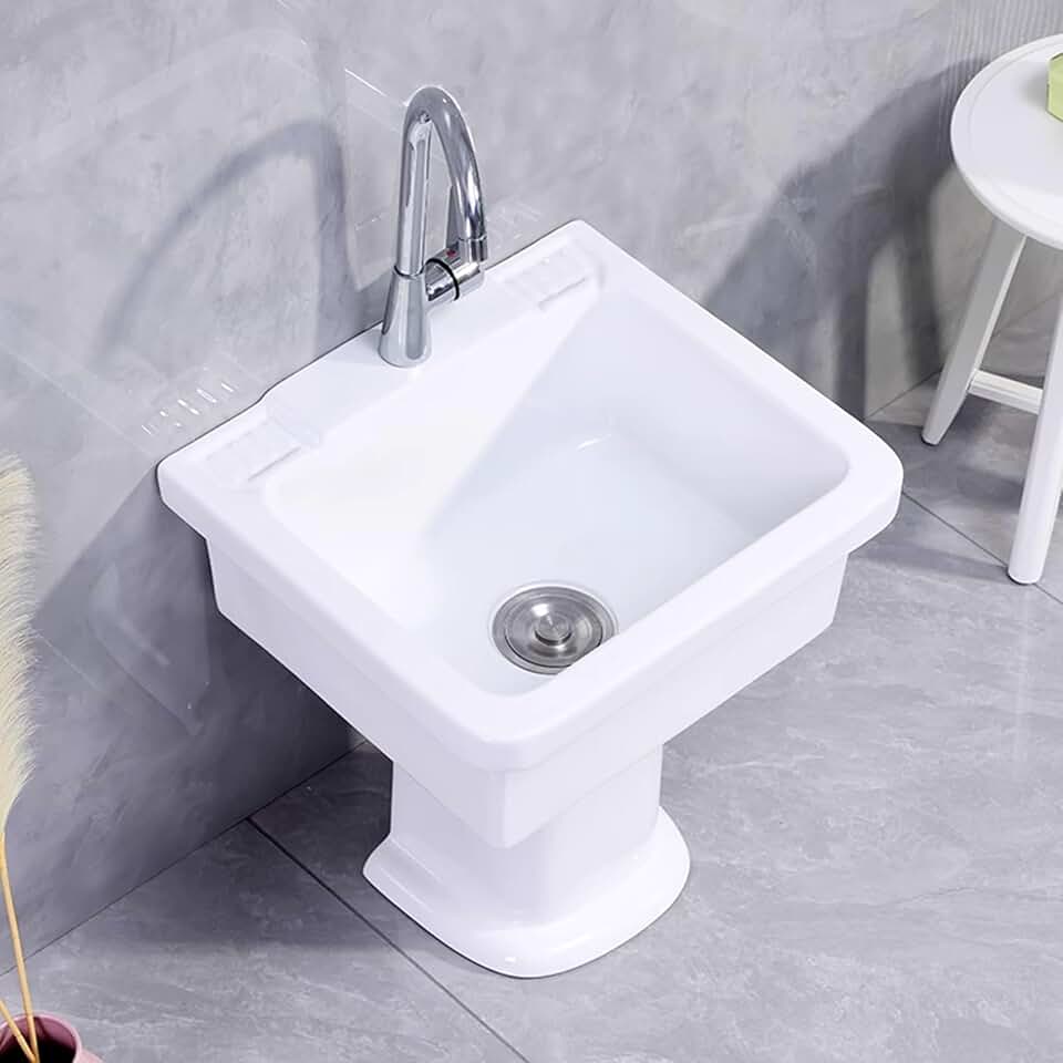 Bathroom Pedestal Sink, Ceramic Pedestal Sink for Bathroom, Glossy White Pedestal Sink, with Hot and Cold Faucet, Free Standing Utility Sink