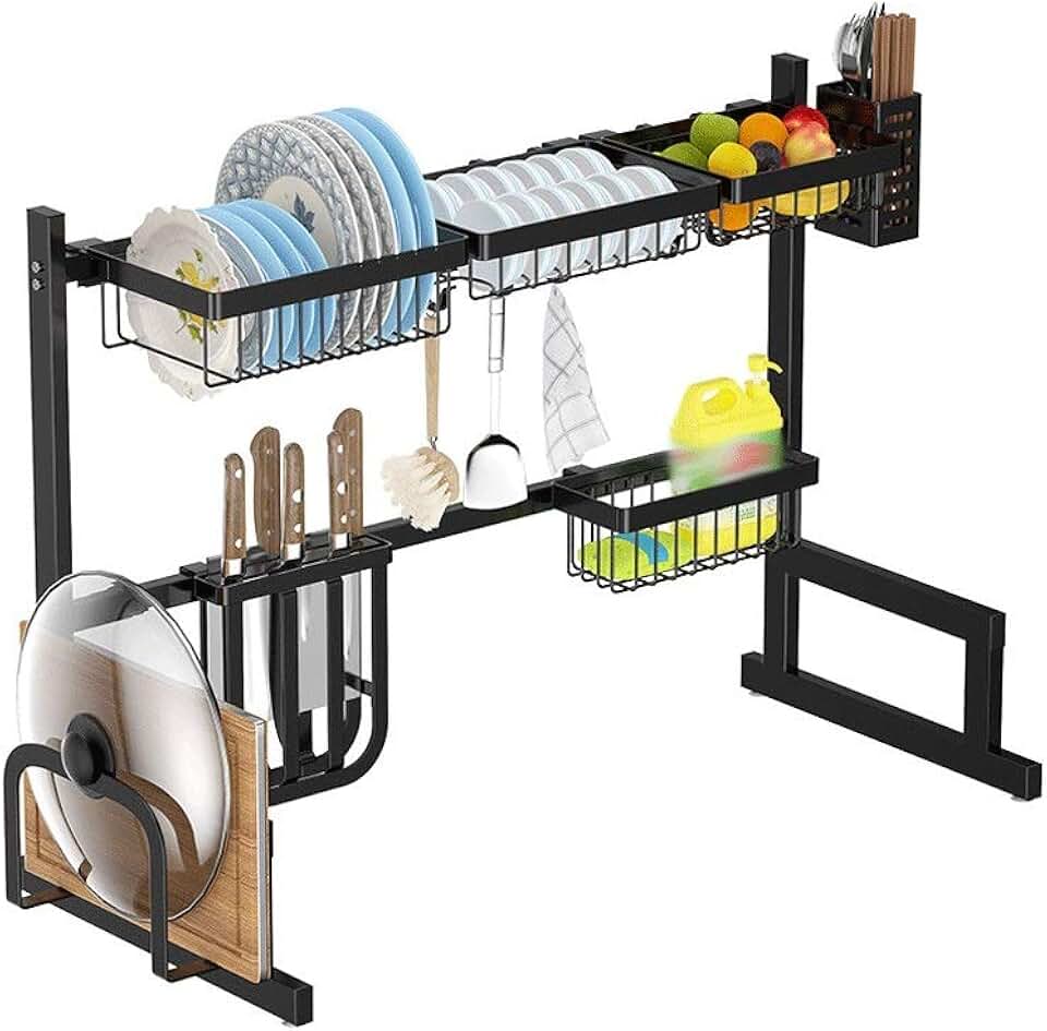 Kitchen Shelf Organizer Dish Drying Rack Over Sink Utensils Holder Bowl Dish Draining Shelf Kitchen Storage Countertop Organizer