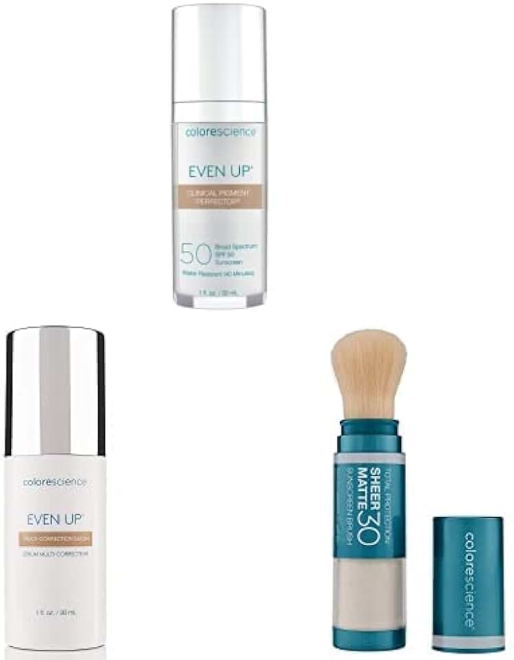 COLORESCIENCE PIGMENTATION CORRECTION BUNDLE: Even Up Clinical Pigment Perfector SPF 50 + Even Up Multi-Correction Serum + Total Protection Sheer Matte SPF 30 Sunscreen Brush