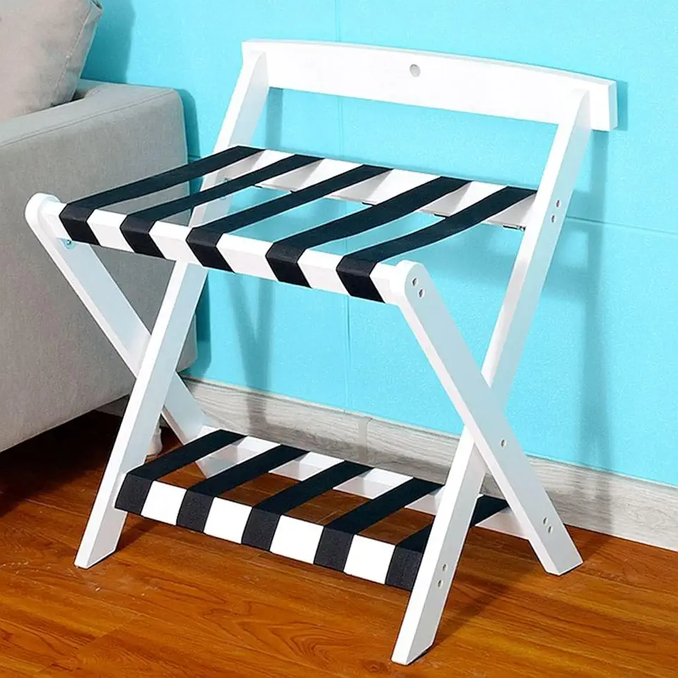 Luggage Rack for Guest Room - Suitcase Stand, White Household Hanger Furniture Landing Storage Shelf, Professional Hotel Luggage Holder, Solid Wood Travel Bag Luggage Storage Stand, 60X50X65