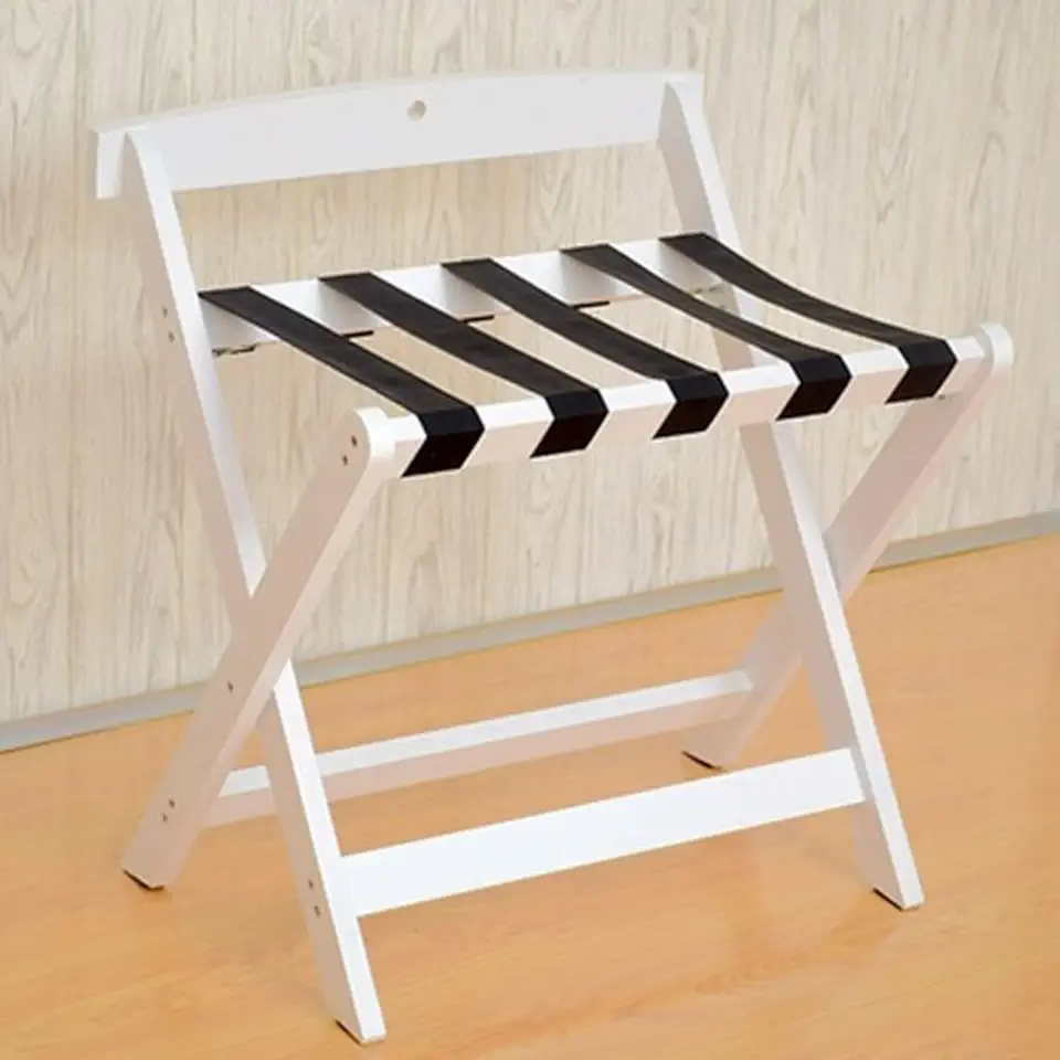 Luggage Rack - Suitcase Stand for Guest Room, Travel Bag Storage Shelf with Backrest, Professional Hotel Organizer Holder White, Solid Wood Travel Storage Stand, for Bedroom, Guest Room