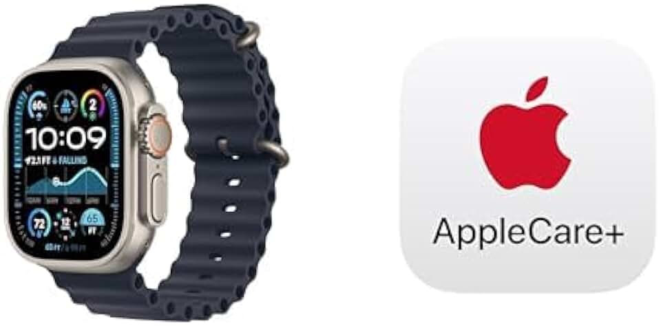 Watch Ultra 2 [GPS + Cellular 49mm] Smartwatch, Sport Watch with Natural Titanium Case with Navy Ocean Band. Fitness Tracker, Precision GPS, Action Button with AppleCare+ (2 Years)