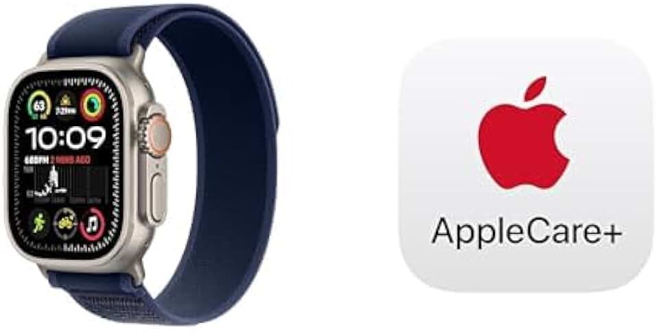 Watch Ultra 2 [GPS + Cellular 49mm] Smartwatch, Sport Watch with Natural Titanium Case with Blue Trail Loop - M/L. Fitness Tracker, Precision GPS, Carbon Neutral with AppleCare+ (2 Years)