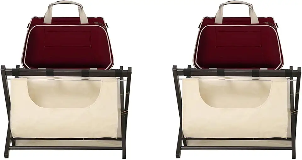 Luggage Rack - Suitcase Stand Wood, with Cloth Pockets Foldable Suitcase Holders, Clothes Storage Bags with Shoe Rack, Black Solid Wood Travel Bag Organizer for Hotel Rooms,63X45X50CM (Size