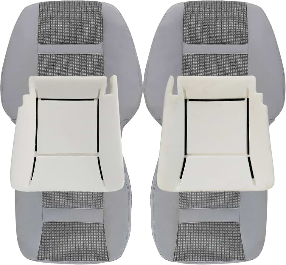 GXARTS Driver And Passenger Side Bottom And Top Lean Back Replacement Cloth Seat Cover And Foam Cushion Light Gray Fit For Dodge Ram 1500 2500 3500 4500 5500 2006 2007 2008 2009 2010