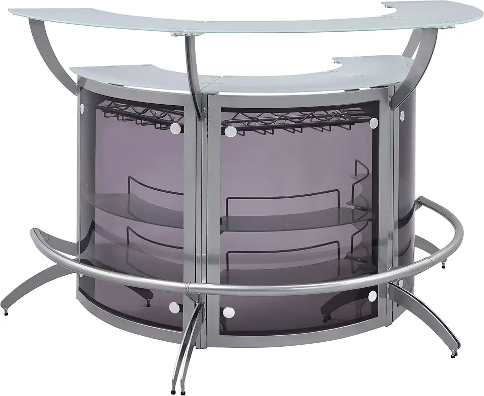 Coaster Home Furnishings Dallas 2-Shelf Curved Home Bar Silver and Frosted Glass (Set of 3)