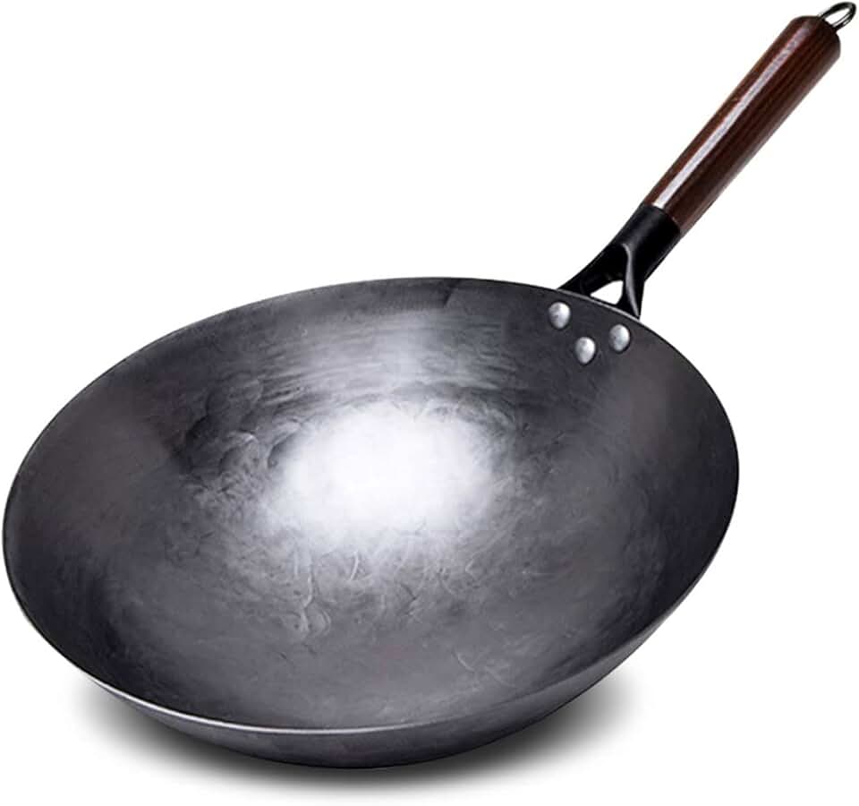 DFHBFG Household Iron Wok,Hand Forging Iron Pan Wooden Handle Iron Non-Stick Wok Pot Gas Cooker(32cm)
