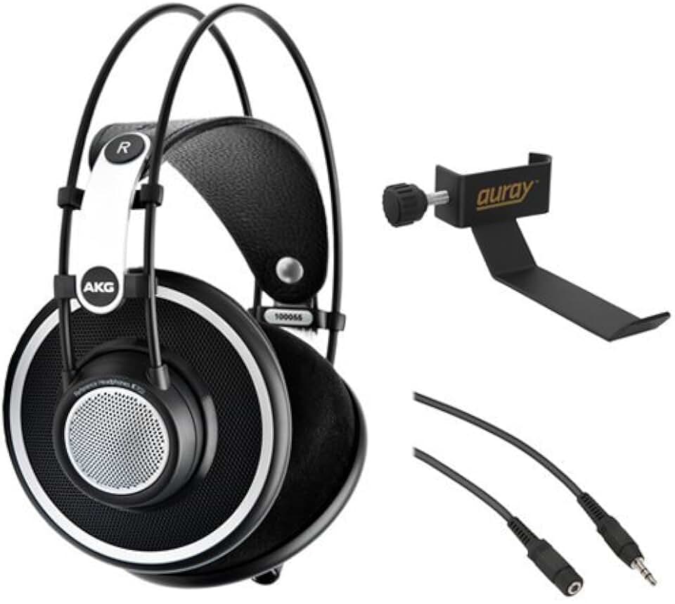 AKG K 702 Reference-Quality Open-Back Circumaural Headphones with Clamp On Headphone Holder and Stereo Mini Male to Stereo Mini Female Extension Cable 25'