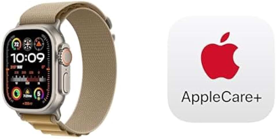 Watch Ultra 2 [GPS + Cellular 49mm] Smartwatch, Sport Watch with Natural Titanium Case with Tan Alpine Loop - L. Fitness Tracker, Precision GPS, Carbon Neutral with AppleCare+ (2 Years)