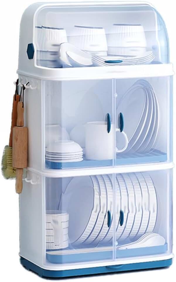 Kitchen Dish Storage Rack Three-Tier Plastic Tableware Organizer with Lid Drain Storage Box