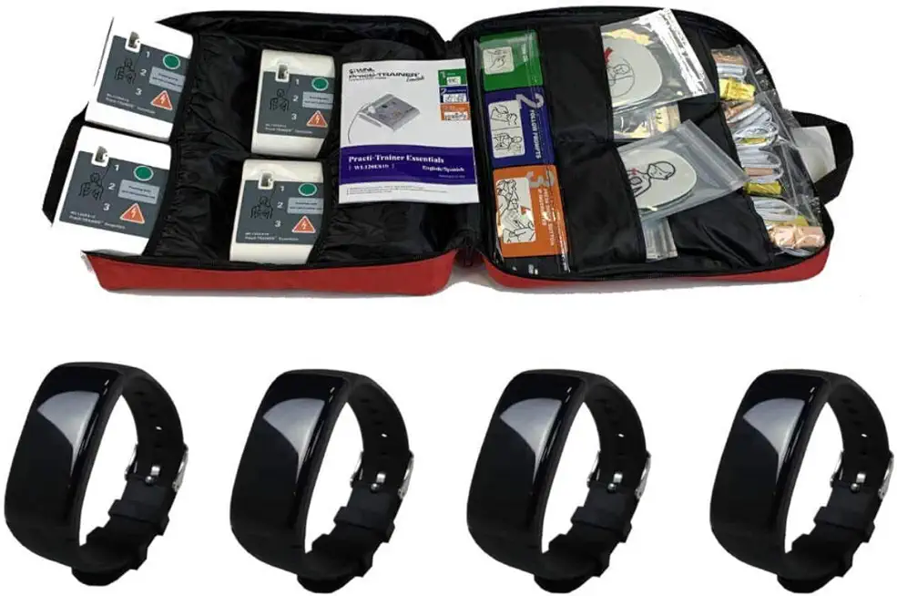 WNL Products WL120ES10-4 & 4 WLCRdM Bundle: 4 Pack AED Defibrillator Practi-Trainer Essentials Base Model AED Training Kit & 4 Pack CPR Compression Rate and Depth Wrist Monitor Device Practi-CRdM With
