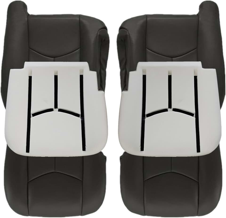 GXARTS Driver and Passenger Side Bottom and Top Lean Back Leather Seat Cove and Foam Cushion 692 or 69i Dark Gray Fit for Chevy GMC Tahoe Suburban Avalanche Yukon Silverado Sierra 2003 2004 2005 2006