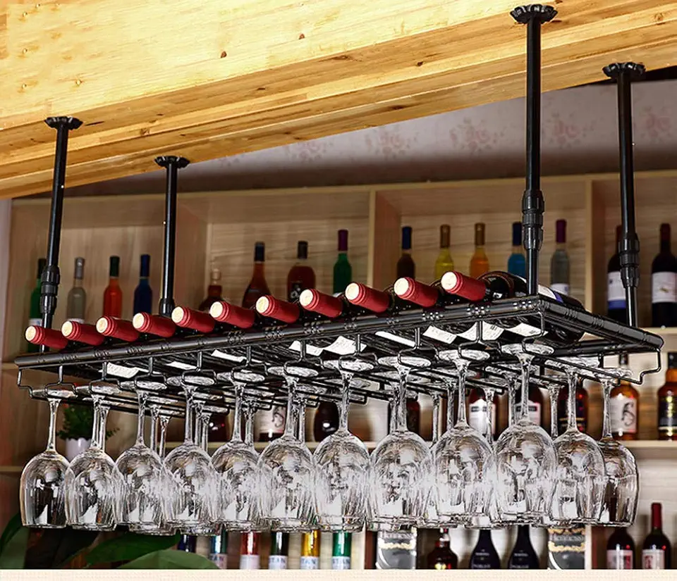 Metal Iron Wall Hanging Mounted Wine Champagne Glass Goblets Stemware Rack Holder Glassware Rack Ceiling Wine Holder Barware Racks-Black-80 35cm