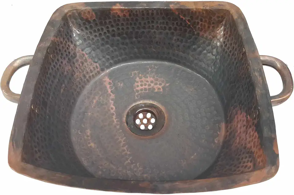 Shallow Rustic Compact Copper Vessel Bathroom Vanity Sink
