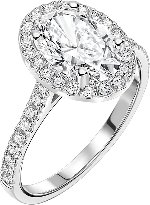 1.25-2.50 Cttw Lab-grown Diamonds and Moissanite oval cut halo engagement ring 14K White Gold (D Color VVS Clarity) Comes With Gift Box