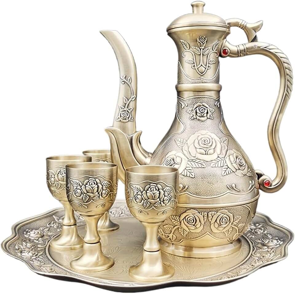 Antique Bronze 6-piece Set of Metal Wine Pot Wine Glass Set Wedding Housewarming Gift