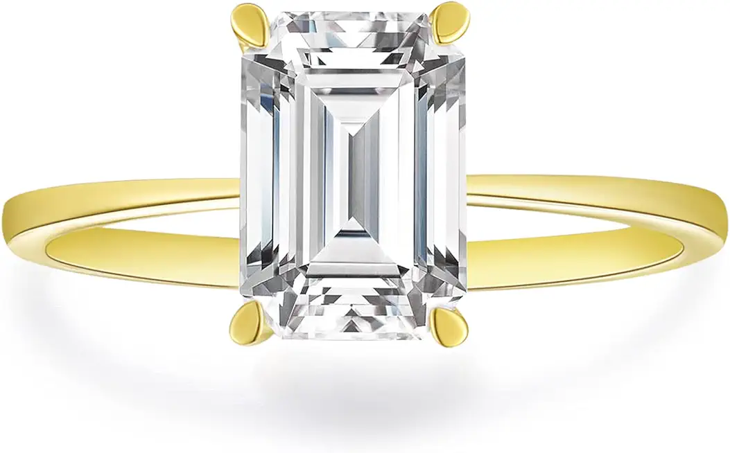 espere 2 Carat Emerald Cut Moissanite Engagement Ring Classic Engagement Ring Solid Gold Plain Ring Band 14K Yellow Gold Bridal Ring Stackable Wedding Ring