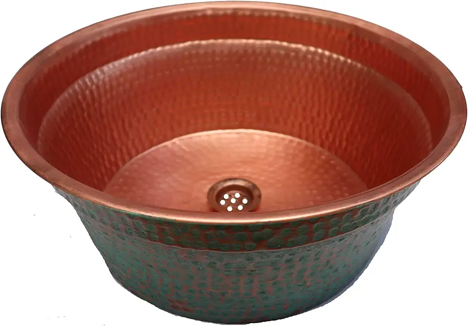 Farmhouse Rustic Exterior Verdigris Vessel Copper Bathroom Sink Toilet Washroom Above Counter Washbasin Bowl Basin Washbasin Decor