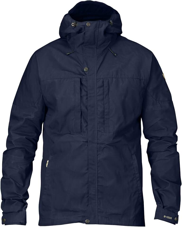 Fjällräven Skogsö Jacket Coats for Men - Leather Details, Two Chest and Two Hand Pockets, and Fixed Two Way Adjustable Hood